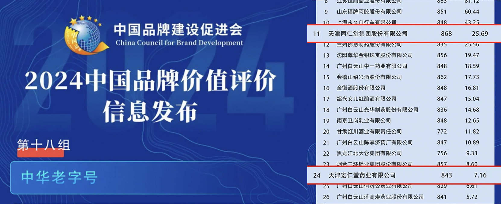 “2024中國品牌價(jià)值評價(jià)”信息發(fā)布 天津同仁堂、宏仁堂榜上有名